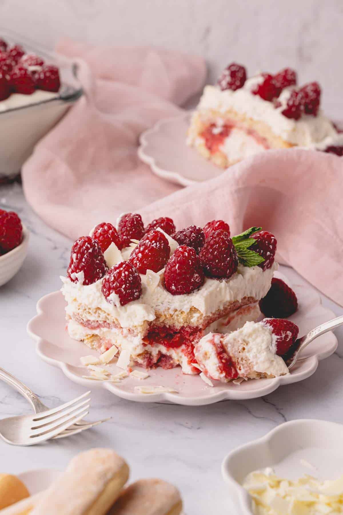 – I don’t recommend freezing the raspberry tiramisu since it can become watery in texture once thawed.