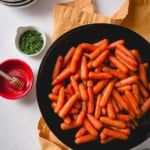 Note 1: You can use regular carrots. Simply peel and chop into smaller pieces.Oven Instructions: You can cook these roasted carrots in the oven. Preheat the oven to 400°F (200°C). Arrange the carrots on a baking sheet, lined with foil, and roast for 15-20 minutes, or until nice and tender.