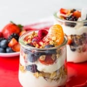 - Yogurt: Try to get one flavored and one plain greek style yogurt. Some people may prefer unsweetened yogurt, and others may want flavored one. In my opinion, honey vanilla yogurt is ideal as it’s sweet, but doesn’t have strong flavor that could overpower fresh fruits. But then again, berry flavored yogurt is pretty darn good too!
